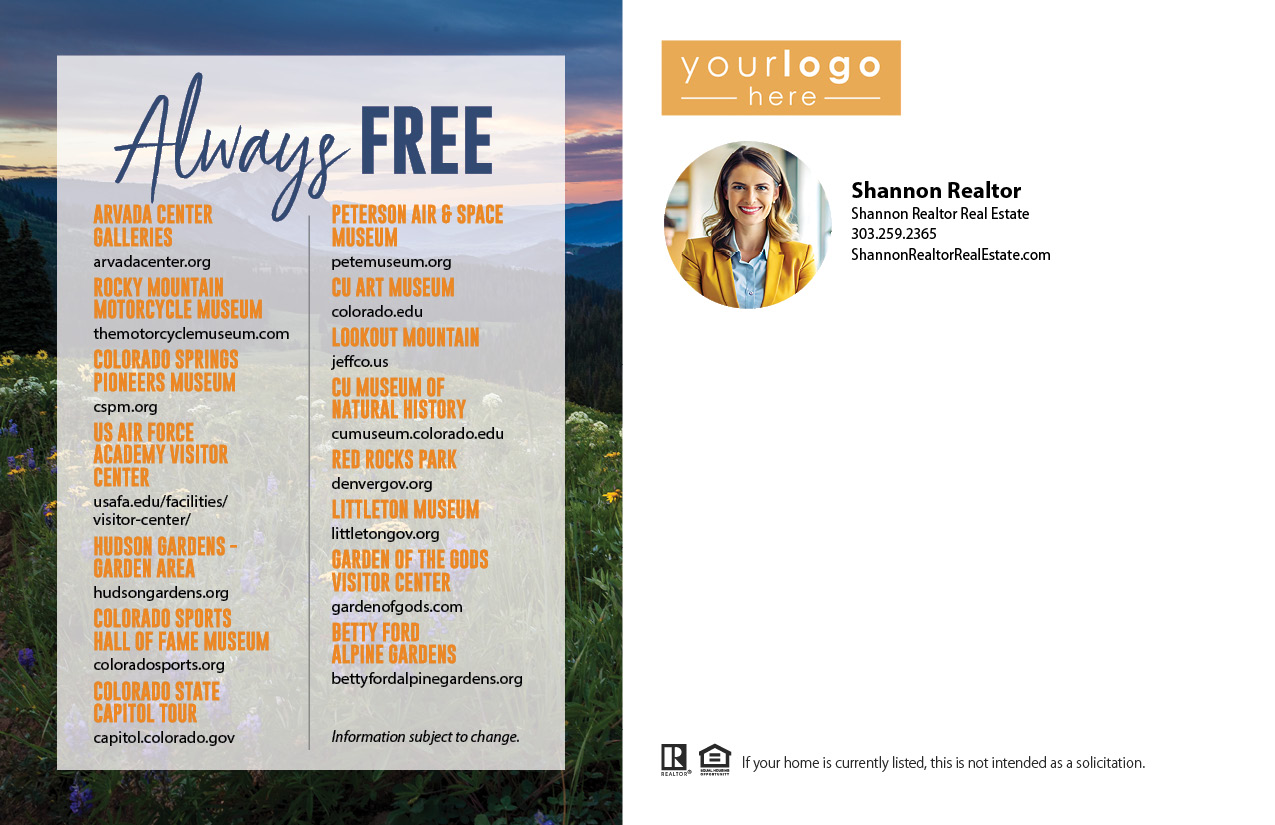 Mail a postcard to your FARM or Sphere that showcases a list of Free Days, that your clients will want to stick to their fridge and keep for the year.