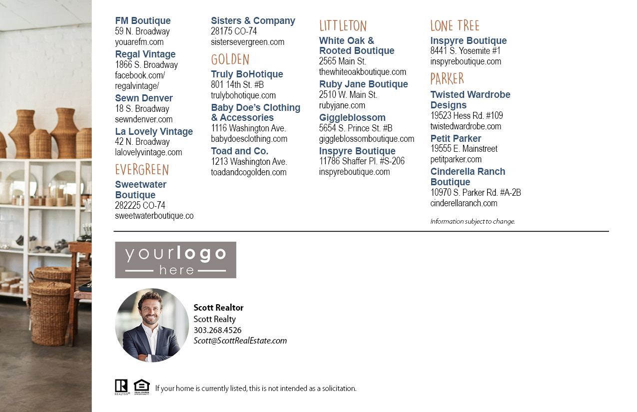 Choose an option Arvada - Olde Town - 7674 Grandview Avenue, Suite 250 Arvada - Satellite - 5701 Yukon Street Arvada South -5440 Ward Road, Suite 240 Aspen - 533 E Hopkins, #102 Aurora - 3005 S Parker Road, Suite 305 Avon - 0090 Benchmark Road, Suite 205 Basalt - 200 Basalt Center Circle Boulder - 2595 Canyon Boulevard, #340 Breckenridge - 200 N Ridge Brighton - 195 Telluride Street, Suite 10 Castle Rock - 20 Wilcox St. Suite 105 Colorado Springs - Downtown -102 S. Tejon Street ,#760 Colorado Springs - North Office -1755 Telstar Drive, Suite 503 Crested Butte - 411 Third Street Delta - 620 Main Street, Suite 101 Denver - Cherry Creek - 3033 East First Avenue, Suite 600 Denver - LoDo 1660 17th Street, Suite 310 Dillon - 256 Dillon Ridge Road, #B-14 DTC - Belleview - 4949 South Niagara Street, Suite 200 Durango - 102 West 18th Street Eagle - 1180 Capitol Street, Suite 102 Englewood - Cascades - 6300 South Syracuse Way Evergreen - 3064 Whitman Drive, Suite 201 Frisco - 60 Main Street, Suite C Ft. Collins - 772 Whalers Way, Suite 100 Glenwood Springs - 901 Grand Ave, Suite 202 Grand Junction - 2454 Patterson Road, Suite 100 Greeley - 4617 West 20th Street B Greenwood Village - Orchard Place - 5975 Greenwood Plaza Boulevard Greenwood Village - The Commons - 6020 Greenwood Plaza Boulevard, #200 Highlands Ranch - Lucent Blvd - 1745 Shea Center Drive, Suite 150 Lafayette - 390 Empire Road, Suite 103 Lakewood - 300 Union Boulevard, #101 Littleton South - 10135 West San Juan Way, Suite 110 Longmont - 916 S Main Street, Suite 301 Loveland - 345 E. 27th Street Montrose - 1561 Oxbow Drive, Suite 200 Parker - 19201 E Mainstreet, Suite 101 Pueblo - 503 N. Main Street, Suite 2 Ridgway - 218 Sherman Steamboat Springs - 255 Anglers Drive Suite B Telluride - 191 S. Pine Street, Suite 1C Vail - 610 W. Lionshead Circle, Suite 300 Westminster Northeast - 2921 West 120th Avenue, Suite 110 Winter Park - 78336 US Highway 40 Suite B3
