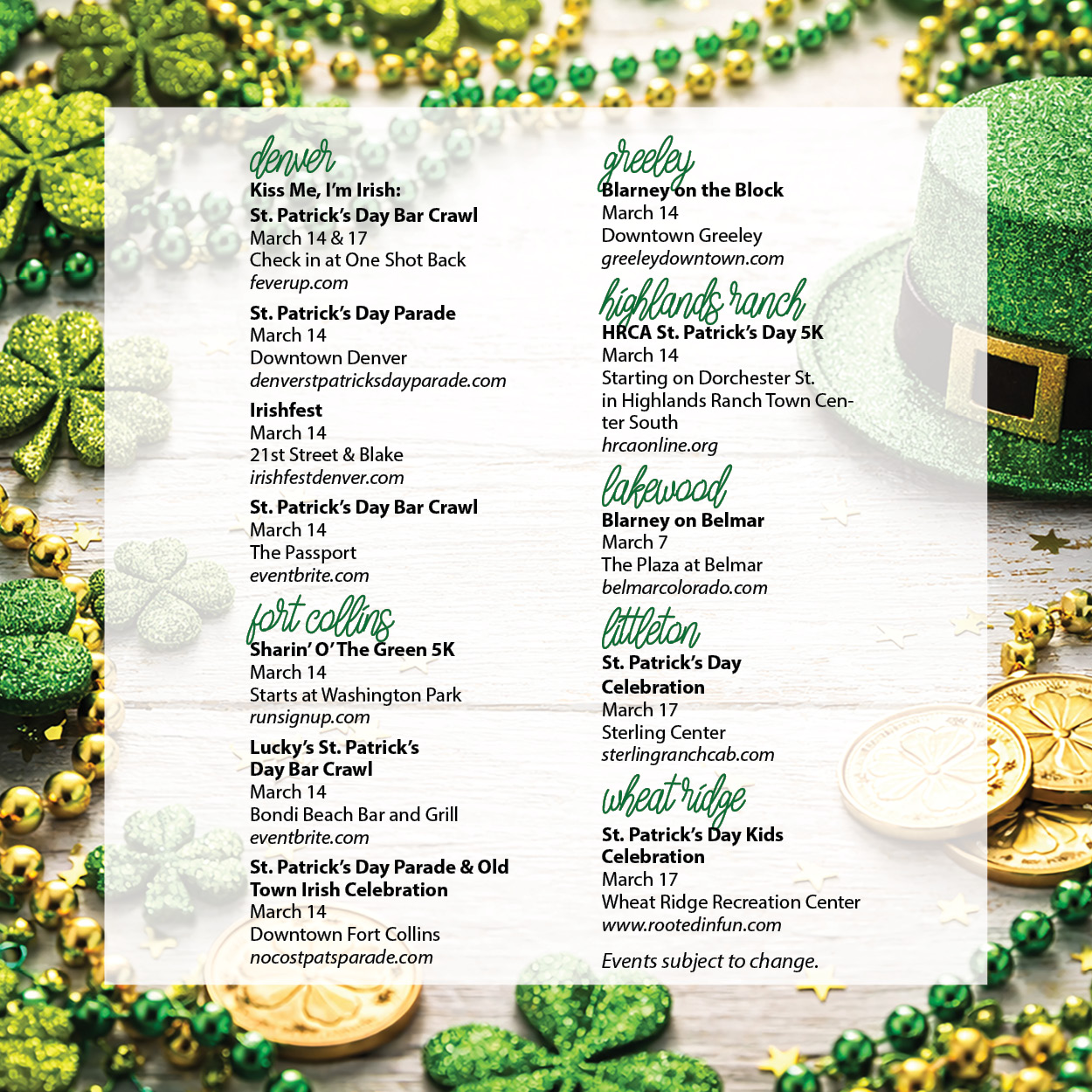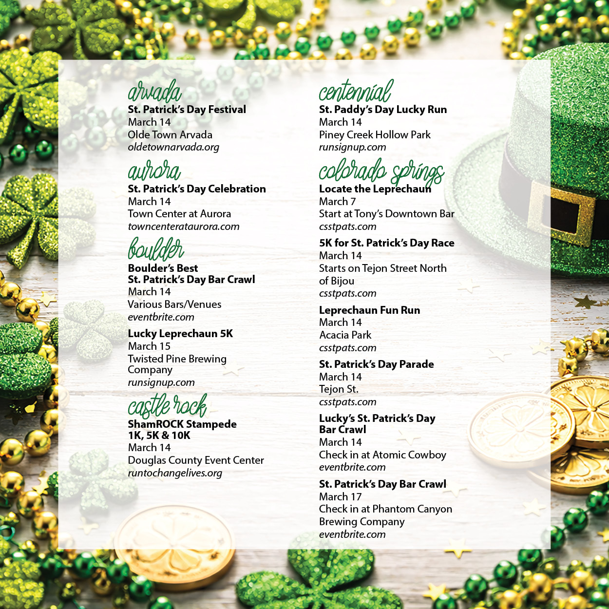 Engage with your social media followers by sharing St. Patrick’s Day activities around Colorado.
